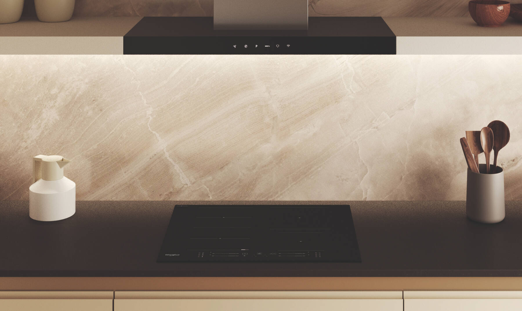 Дизайн нової індукційної варильної панелі Whirlpool розроблено таким чином, щоб він ідеально вписувався в інтер'єр будь-якої кухні. Вона не потребує місця під стільницею для фронтальної вентиляції і не має естетичних недоліків. Конструкція без зазорів дозволяє встановлювати варильну поверхню просто на стільницю. Мінімальна необхідна товщина стільниці має бути 12 мм для встановлення без духовки або 28 мм з духовкою. Вона легко встановлюється в нішу для газової плити розміром 60 і 65 см* без додаткових припасувань і регулювань. У результаті ви отримуєте легке й бездоганне встановлення на будь-якій кухні.