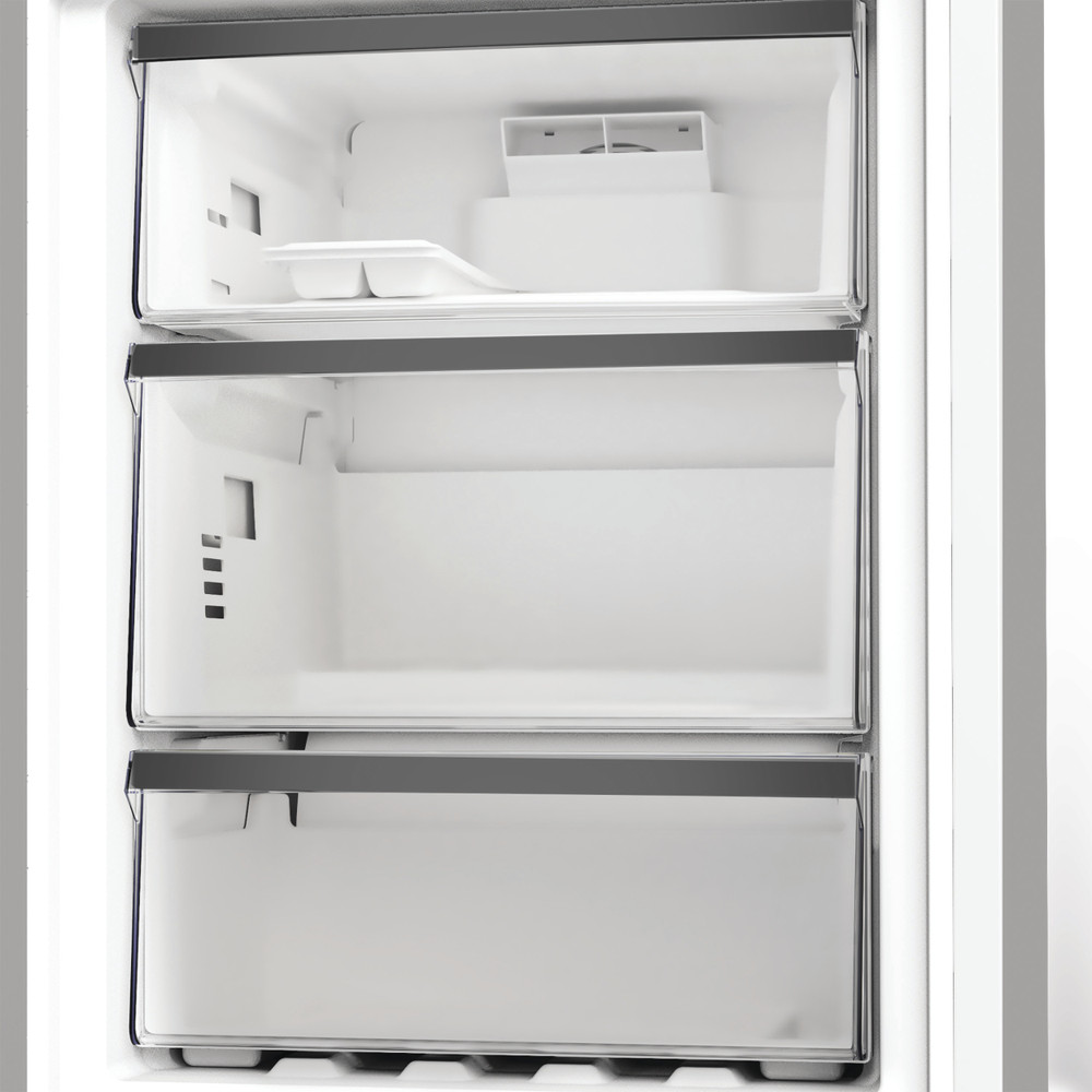 Характеристики холодильника Whirlpool соло з нижньою морозильною камерою: технологія No Frost, яка перешкоджає утворенню інію за рахунок зниження рівня вологості. Високий прилад, який може вмістити продукти відповідно до вподобань кожного з членів родини. Скляні полиці надають зовнішньому вигляду елегантності та надійності. Полиця-балкон для пляшок забезпечить зручне та надійне зберігання.